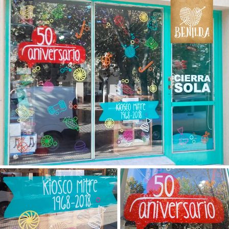 Benilda realizó el diseño y colocación de vinilos por los 50 años de Kiosco Mitre