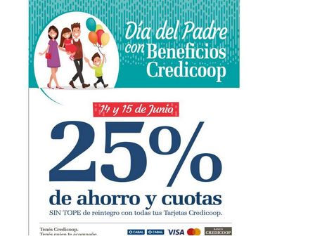 Los días 14 y 15 de junio tendrán un 25 por ciento de descuento y cuotas con las tarjetas CREDICOOP.