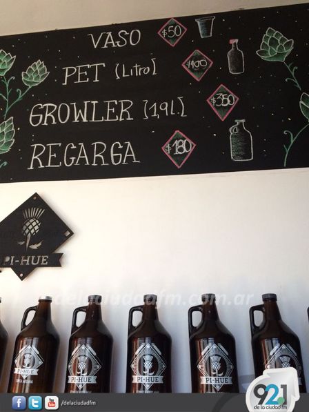 Envases pets, vasos con cerveza tirada, recarga de growlers, y varias propuestas más pueden conseguirse en el local de Pihué Cerveza Artesanal.