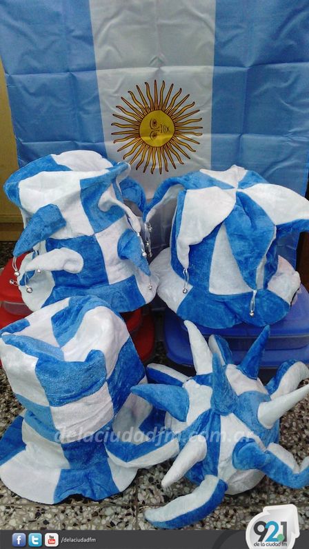 Gorros, banderas, remeras, trompetas, y más accesorios para alentar a la Selección Argentina están disponibles en Ciudad de Rodez 169 de la localidad.