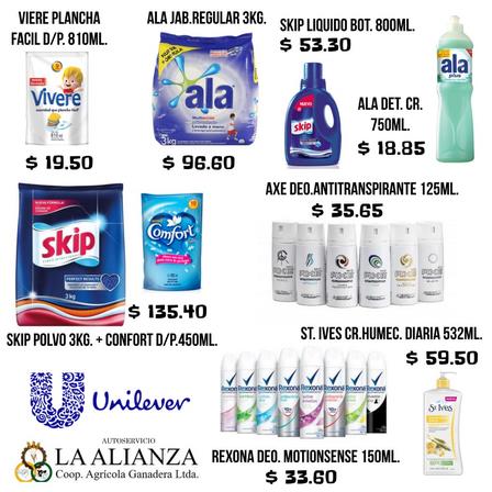 Hasta este miércoles inclusive se encuentra en promoción el jabón regular Ala, de tres kilos, a 96.90 pesos y el aplicador Vívere, para plancha, en pack de 810 mililitros, por 19 pesos 50 centavos.