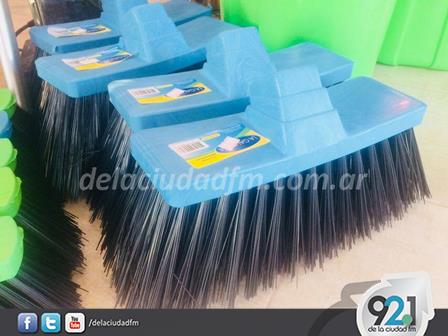 En Lavalle esquina Ruperto Tanco de la ciudad ahora hay trapos para piso, escobillones, broches, y demás elementos de limpieza.