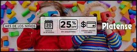 Hasta el 20 de agosto 25 por ciento de rebaja en juguetes por el Mes de los Niños en Platense Hogar pagando de contado efectivo o débito.