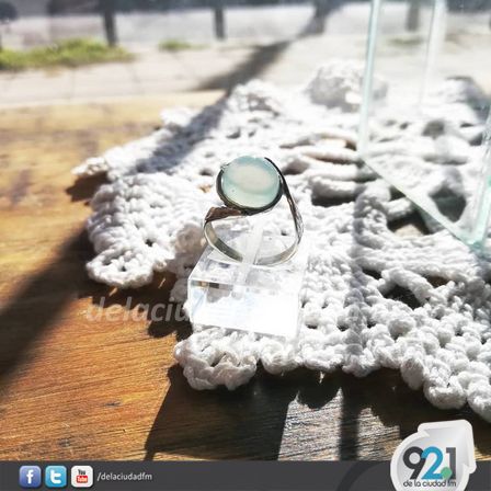 El anillo de plata 925 con piedra Onix celeste cielo puede conseguirse en el taller boutique de calle Urquiza 429 de la ciudad.