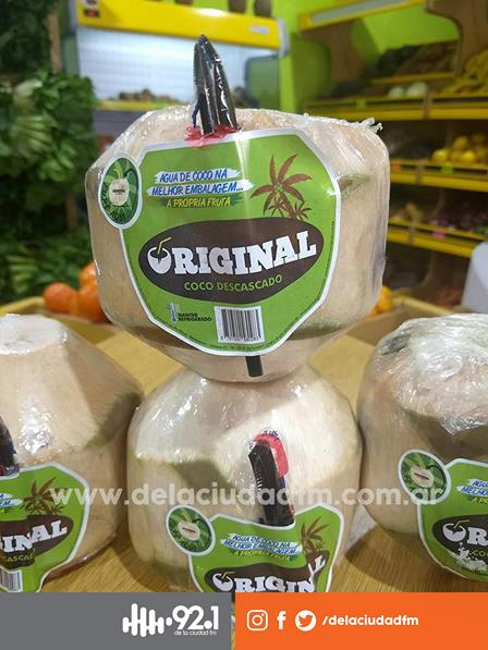 El agua de coco puede conseguirse, a través del coco descascado, en el local de calle 9 de Julio esquina Carlos Gardel.