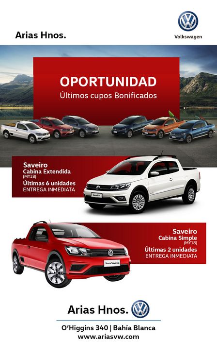La concesionaria oficial Volkswagen presenta promociones especiales para Saveiro cabina simple y cabina extendida.
