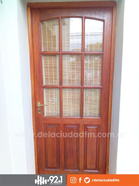 Gonzalo Suárez Combes realiza tareas de restauración en puertas de madera y su posterior trabajo de pintura sobre las mismas.