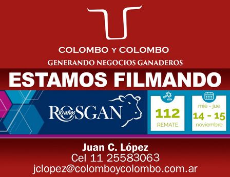 La Consignataria comunica la fecha para el próximo Rosgan: 14 y 15 de Noviembre. Anote su consignación con anticipación. Ya estamos filmando.