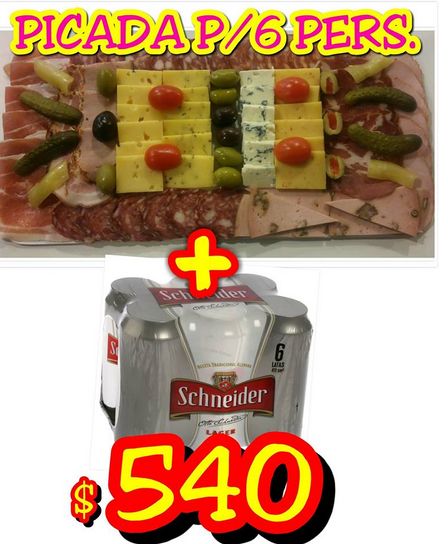 Por pago contado con 540 pesos uno cuenta con 6 cervezas Schneider más una tabla para seis personas.