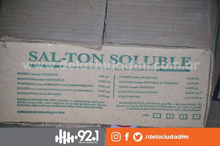 La sal soluble para el ganado vacuno está disponible en el salón de calle Darwin 275 de la ciudad.