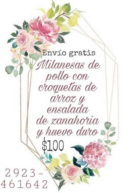 El menú de hoy es milanesas de pollo con croquetas de arroz y ensalada de zanahoria y huevo a $ 100 con envío gratis.