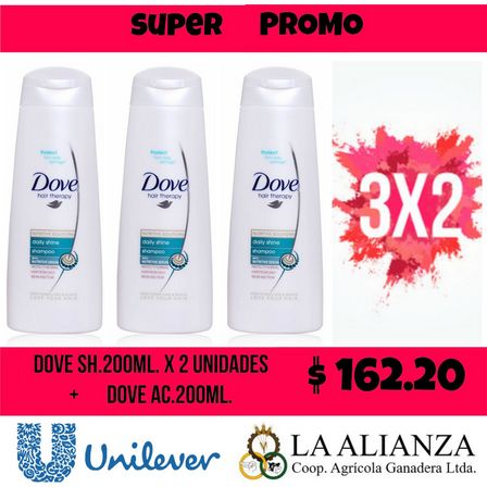 Ahora el shampoo Dove de 200 mililitros puede encontrarse a 162 pesos las dos unidades con una más de regalo.