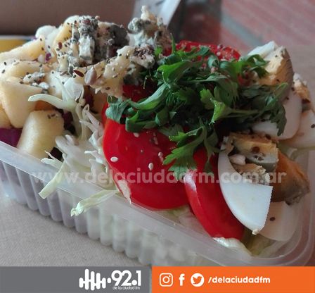 Pizzabrossa prepara ensaladas con variedades como lechuga, repollo de los dos colores, tomate, apio, manzana, huevo duro, roquefort y semillas.