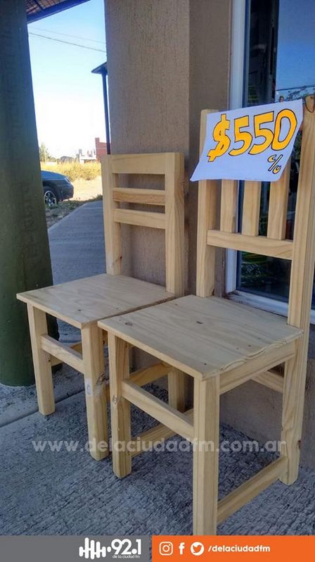 Por 550 pesos es posible encontrar las sillas de pino ubicadas en el local de calle Ruperto Tanco esquina Lavalle.