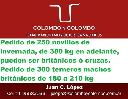 Colombo y Colombo da a conocer sus pedidos de hacienda de invernada