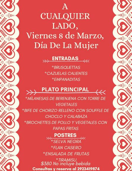 A Cualquier Lado realiza reservas al 2923 41 98 74.
