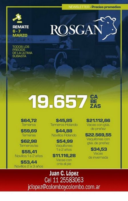 Colombo y Colombo divulgó los precios promedios del último Rosgan