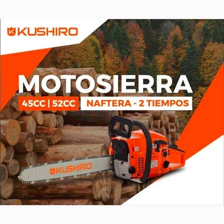 El valor de la Motosierra KUSHIRO de 45 cc, con espada de 45 centímetros, es, de contado, $ 5.380.