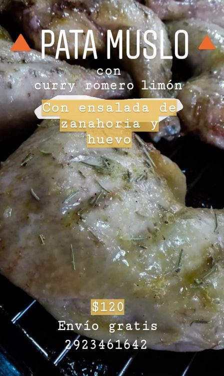 Pizzabrossa prepara pata muslo de pollo con ensalada a 120 pesos.