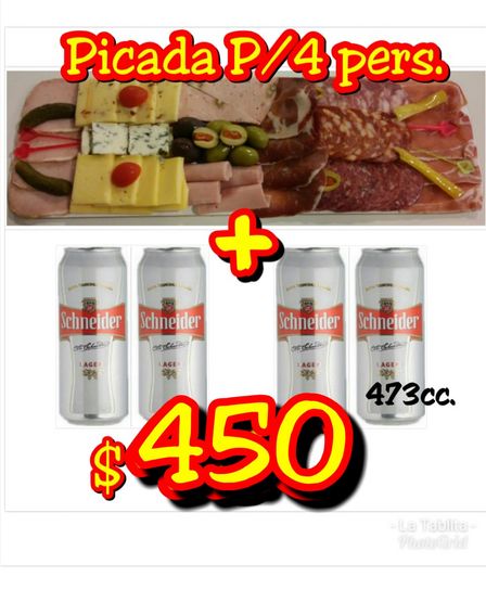 La Tablita cuenta con cuatro latas de cerveza Schneider, más una tabla para cuatro personas, a ese valor.