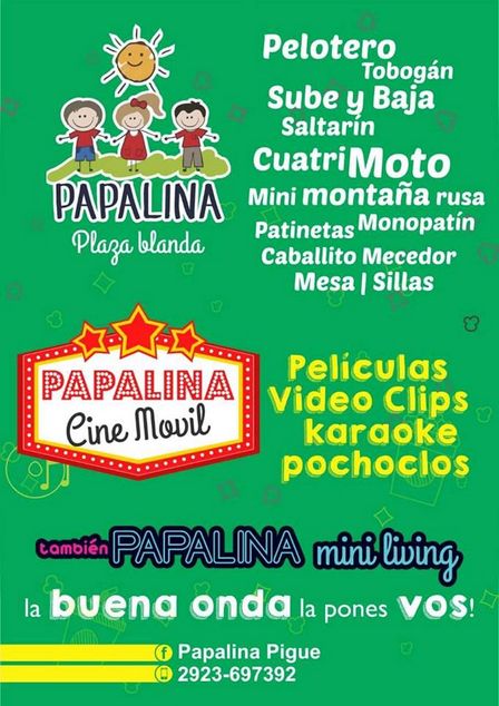 Papalina promociona el alquiler de la plaza blanda, el cine móvil y el mini living