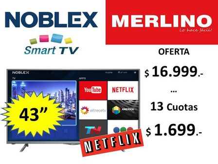 Por 16.999 pesos es posible encontrar un nuevo TV Noblex de 43 pulgadas en el local de Avenida Alsina esquina Casey de la ciudad.