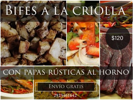 El menú de hoy es bifes a la criolla con papas rústicas al horno.