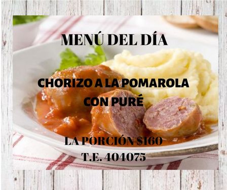 En el salón de Avenida Avellaneda 350 de la ciudad cocinan hoy chorizo a la pomarola con puré.
