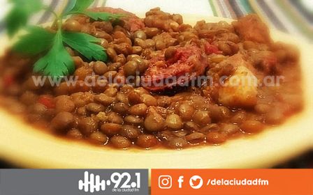 Durante el día de hoy, martes, en el local de Alvear esquina Moreno, cocinan guiso de lentejas con tocino.