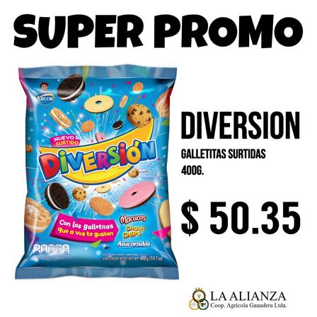Las galletitas Diversión surtidas, en su paquete de 400 gramos, cuestan 50 pesos con 35 centavos.