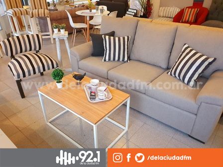 En el salón de ventas exhiben un sofá Prada que se encuentra disponible para la venta.