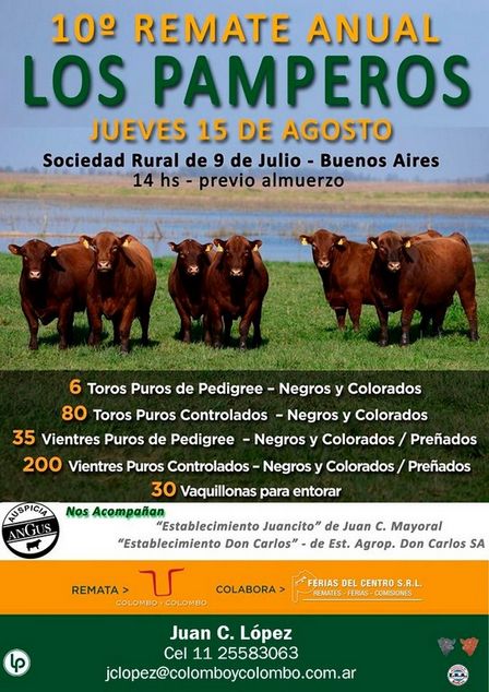 Consultas con el representante de Pigüé y zona: Juan C. López al cel 011-15-2558-3063 ó al mail Esta dirección de correo electrónico está siendo protegida contra los robots de spam. Necesita tener JavaScript habilitado para poder verlo..
