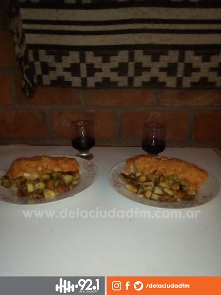 En sus instalaciones cocinaron pollo a la pastora con papas cocinadas en horno de leña.