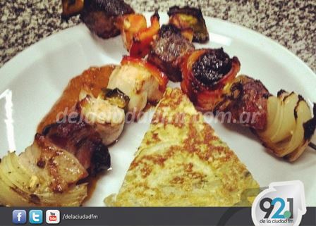 Anoche, en el salón de Belgrano e Irigoyen de Pigüé, el chef preparó una exquisita tortilla que hizo las veces de guarnición para los brochetes mixtos del jueves gourmet.