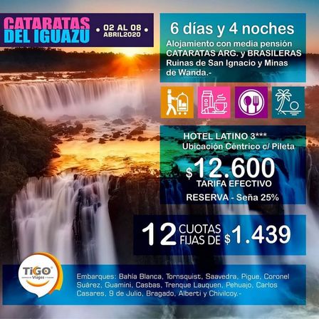 Tigo Viajes, para el 2020, está presentando detalles de las próximas salidas a Cataratas de Iguazú.