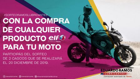 Comprando cualquier producto ELF, de la marca Total Lubricantes, para motos, uno participa del sorteo de 2 cascos a realizarse el 20 de diciembre.