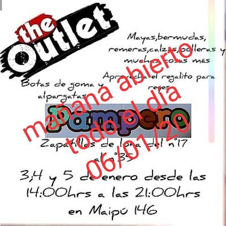Hay mallas, bermudas, remeras, calzas, polleras, zapatillas de lona del 17 al número 35, botas de goma y alpargatas.