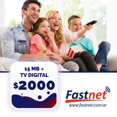 Además, la grilla de canales es súper completa y variada con opciones de programación para todos los gustos. La televión evolucionó y es hora de que tomemos control de nuestro entretenimiento con una opción económica, ágil, y llena de diversión para toda la familia. Hay mucha más información disponible sobre esta nueva propuesta en www.fastnet.com.ar o llamando al 0800 - 333 - 3278".