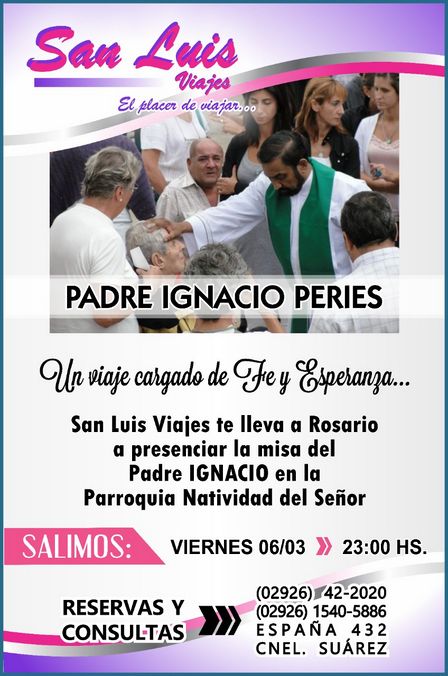 San Luis Viajes organiza una salida a Rosario para participar de la Misa del Padre Ignacio