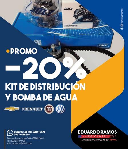 La firma local con sede en Avenida Pueyrredón 140 de Pigüé cuenta con un 20 % de descuento en el kit de distribución y bomba de agua para vehículos de marcas Renault, Chevrolet, Fiat y Volskwagen.