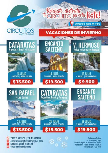 Para vacaciones de invierno Circuitos Viajes y Turismo tiene varias propuestas