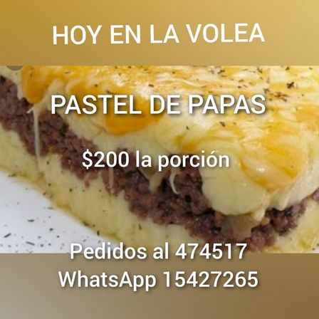 La Volea Sport Bar cocina pastel de papas tomando reservas al 47 45 17 o bien al 2923 42 72 65.