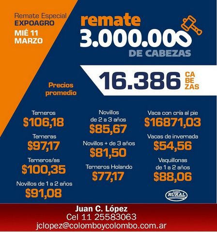 Colombo y Colombo dio a conocer los precios promedios del último Rosgan de Expoagro
