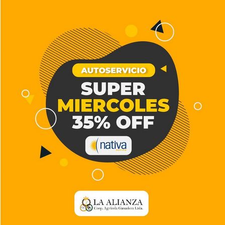 En el Autoservicio de Cooperativa La Alianza, con tarjeta Nativa, del Banco Nación, el descuento será del 35 % con 1.500 pesos de tope de reintegro, en todos los productos del supermercado.