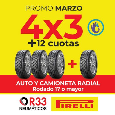 Hasta el 31 de marzo de 2020 hay un 4 x 3 más 12 cuotas sin interés en neumáticos de auto y camioneta radial marca Pirelli rodado 17 o superior.