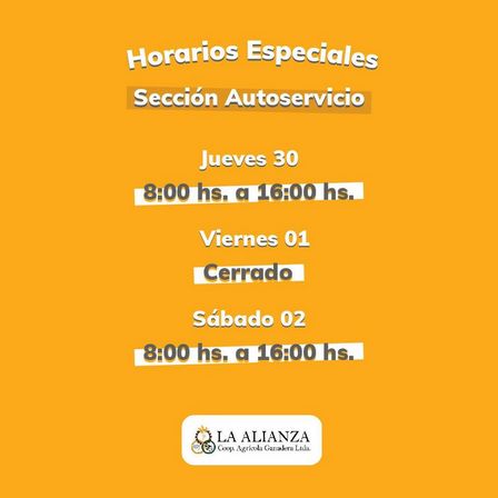 El sábado 2 de mayo Cooperativa La Alianza, con su Autoservicio, atenderá nuevamente de 8.00 a 16.00 horas.