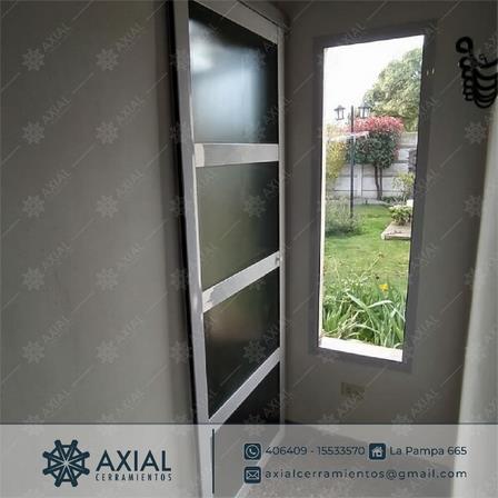 Una puerta corrediza para un baño fue fabricada por Axial Cerramientos.