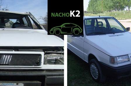 El aviso comercial dice '¿Chocaste? NachoK2 hace el mejor trabajo para recuperar tu vehículo. Más datos en www.guiasaavedrapigue.com'