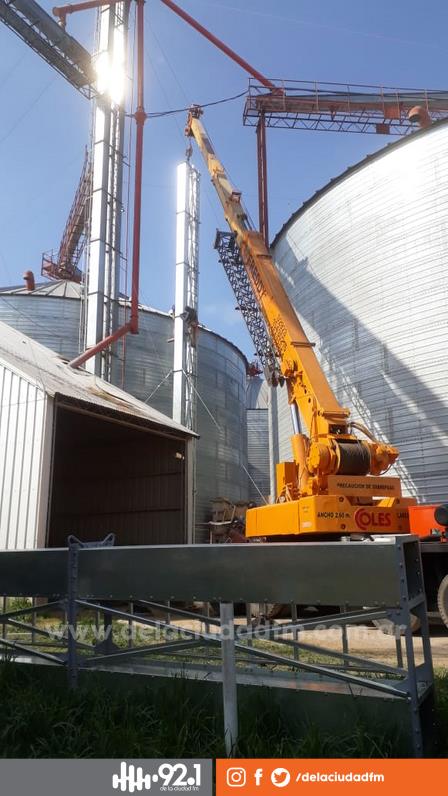 Esta vez en una planta de silos, con una noria de 30 metros, la empresa local desarrolló un nuevo trabajo.