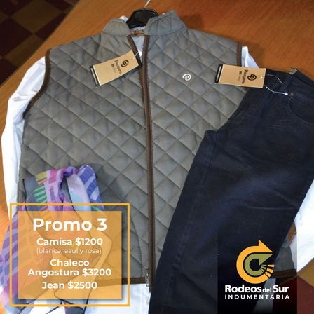 Una nueva promo especial que tiene Rodeos del Sur Indumentaria cuenta con jean, chaleco, y camisa.